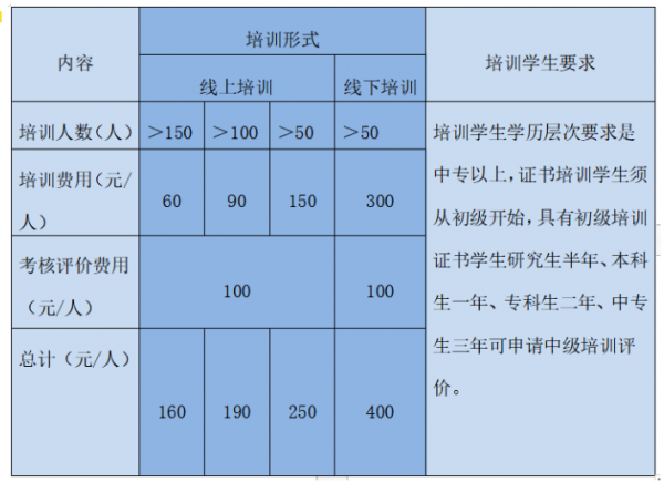3.社會人員初級培訓(xùn)考核費(fèi)用線下為1000元/人,線上為800元。學(xué)生單獨(dú)報(bào)名線上400元/人,需學(xué)生證