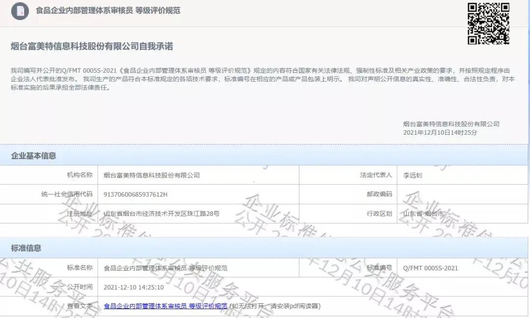 2021年12月10日,食品伙伴網(wǎng)旗下的煙臺富美特信息科技股份有限公司(下稱“食品伙伴網(wǎng)”)編寫的Q/FMT 0005S-2021《食品企業(yè)內(nèi)部管理體系審核員 等級評價規(guī)范》在國家標(biāo)準(zhǔn)化管理委員會企業(yè)標(biāo)準(zhǔn)信息公共服務(wù)平臺公開發(fā)布。該標(biāo)準(zhǔn)對食品及相關(guān)企業(yè)內(nèi)部管理體系審核員進行了評價等級劃分,并明確了各等級的申請要求、資格經(jīng)歷要求、審核經(jīng)歷要求、個人素質(zhì)要求、知識和技能要求、考核要求等,涵蓋領(lǐng)域包括:內(nèi)部質(zhì)量管理體系、內(nèi)部環(huán)境管理體系、內(nèi)部職業(yè)健康安全管理體系、內(nèi)部食品安全管理體系、內(nèi)部危害分析與關(guān)鍵控制點管理體系。該標(biāo)準(zhǔn)的發(fā)布,正式將食品企業(yè)內(nèi)部管理體系審核員的等級評價進行了標(biāo)準(zhǔn)化、規(guī)范化。