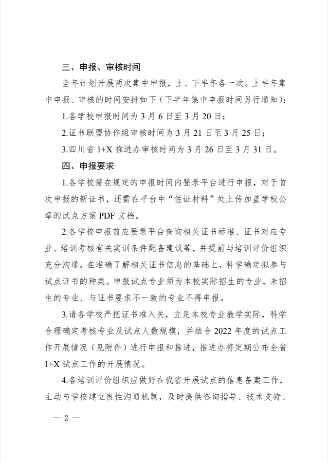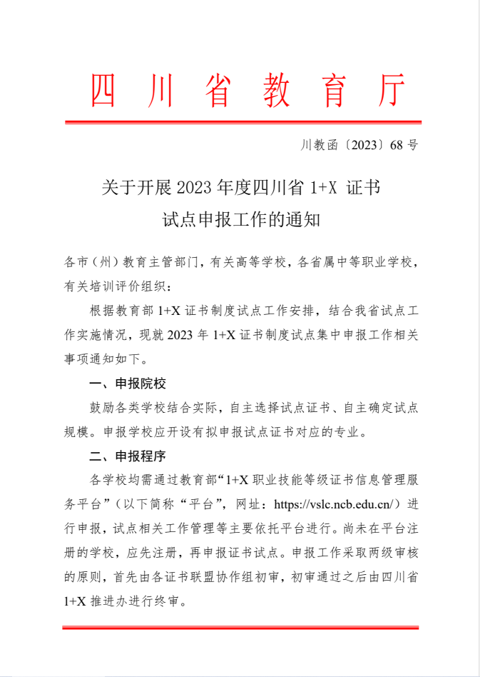 【四川省】關(guān)于開展2023年度1+X證書試點(diǎn)申報工作的通知